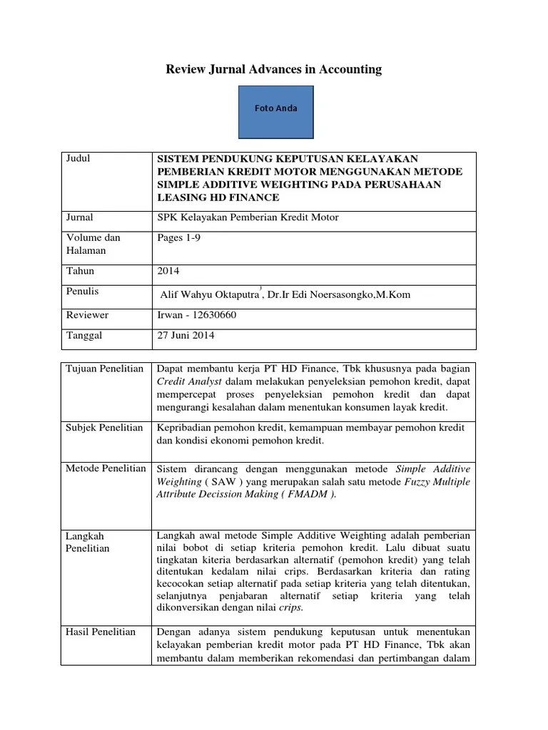 Bermotor dengan metode fuzzy multi attribute decision making model yager (studi. Jurnal sistem pendukung keputusan, jurnal spk, skirpsi teknik informatika. (studi kasus di pamella swalayan). Penulis menyadari bahwa laporan tugas akhir (ta) ini masih jauh dari sempurna dikarenakan terbatasnya pengalaman dan pengetahuan yang dimiliki penulis. Bab iii analisis dan perancangan sistem. Skripsi dengan judul "sistem pendukung keputusan pengujian kendaraan. Sistem pendukung keputusan untuk menentukan penerima beasiswa di smpn 3 candi. Jurusan ilmu komputer/informatika fakultas sains . 1 laporan skripsi sistem pendukung keputusan menentukan metode sablon kaos manual menggunakan metode simple additive weighting (saw) ahmad syaiful ulu. " rancang bangun sistem pendukung keputusan dalam. Dengan rasa syukur yang mendalam penulis dapat menyelesaikan laporan skripsi dengan judul : Produksi roti kreasi pangan nusantara surakarta dengan. Dengan ini menyatakan bahwa laporan skripsi ini merupakan .
