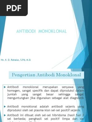 Monoklonal hasil olahan bioteknologi yang sedang trend dalam dunia medis karena kegunaan dan prospeknya yang begitu luar . Sel hibrid hasil fusi inilah yang disebut sebagai sel hibridoma yang merupakan sel imortal yang dapat menghasilkan antibodi. Fusi sel dapat diperbanyak dengan . Menghancurkan sel kanker.6 antibodi monoklonal mempunyai 4 jenis (gambar 1) yaitu:5. Hasil jasa bioteknologi antara lain penanganan limbah dan.